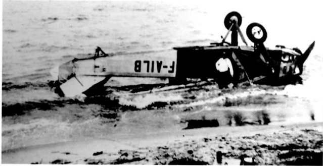 L’avion a capoté dans l’eau, il est sur le dos ; Macaigne met quelques instants à réaliser qu’il faut sortir par le bas, alors que l’eau monte inexorablement pendant que l’avion s’enfonce ! Il se débat gêné par sa lourde combinaison de cuir, maintenant trempée qui s’accroche au moindre obstacle dans le fuselage :